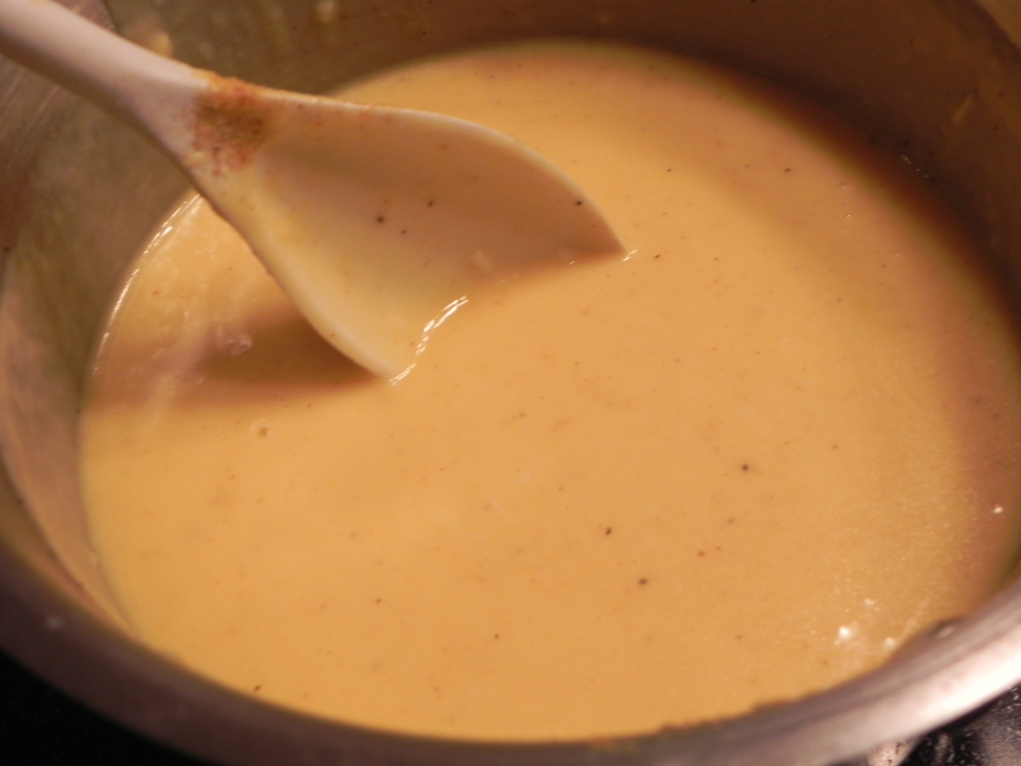 It’s simple enough. The trick is in stirring until blended and continuing to do so as you add more milk, water, or broth. If your roux mixture gets lumpy, either mash the lumps or drain or scoop them out.