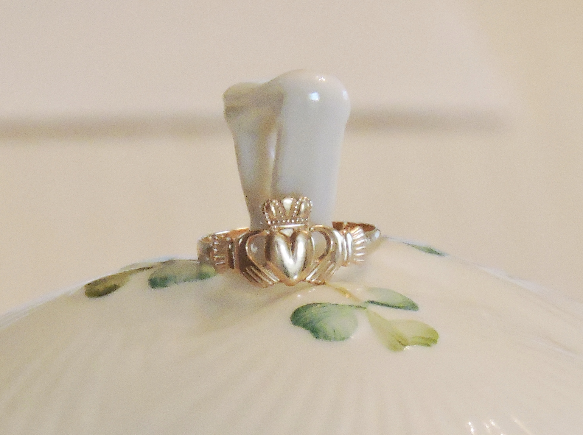 The Claddagh is comprised of three elements: hands which represent friendship; a heart for love; and a crown for loyalty. How the ring is worn also is symbolic: