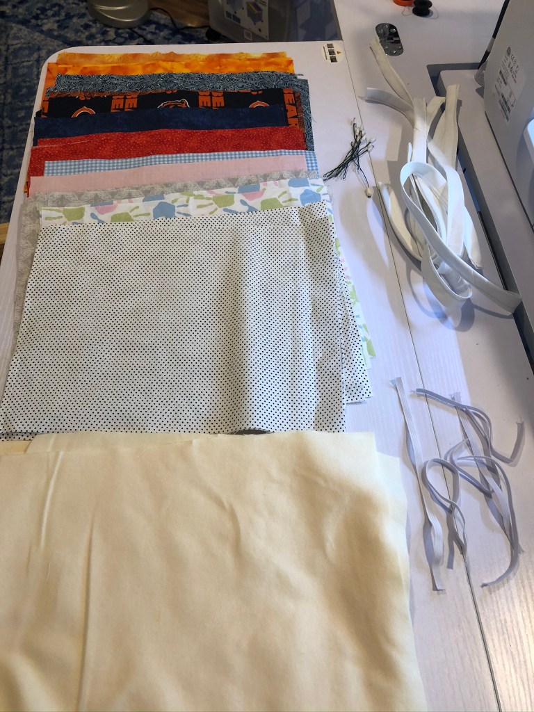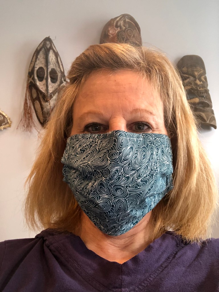 A mask doesn’t take long to make, but it’s a tedious job. There are a lot of little stops and goes along the way. This is my favorite pattern. I use only quilters cotton fabric for the two outside layers and prefer flannel for the lining since I haven’t been able to get my hands on nonwoven interfacing.