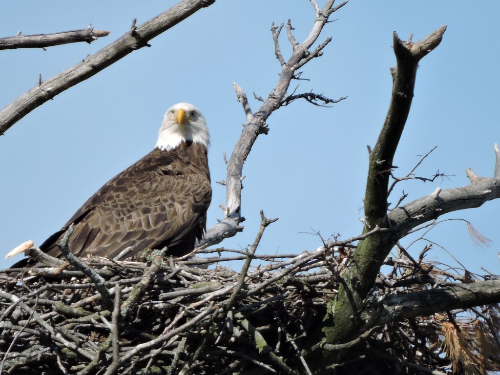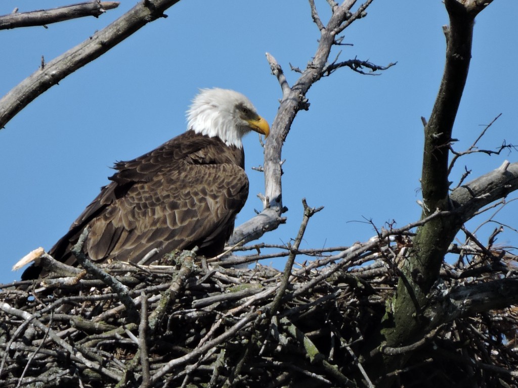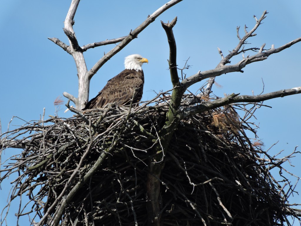 We are blessed to have nesting eagles in the little town in which I live along the Fox River in Illinois. Bald eagles usually are sensitive to human activity while nesting. However, the ones in my area don’t seem to mind a fascinated yet respectful audience below snapping photos.