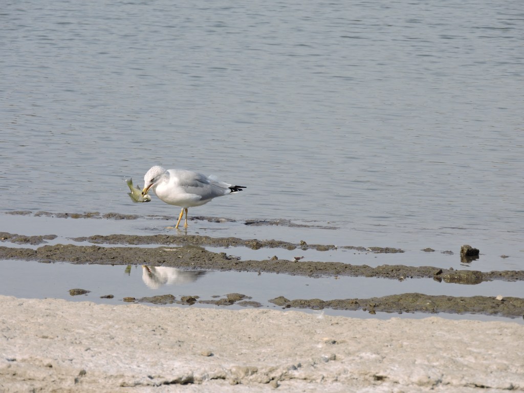 A gull feasted on fresh fish.