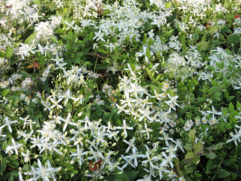 But the greatest surprise of the day was what I believe to be jasmine. It’s delightful fragrance announced its presence before we spotted the lush growth attracting hungry bees.