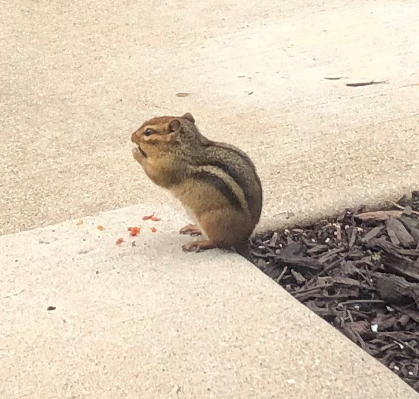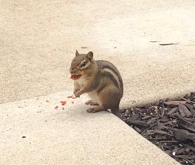 The busy small, striped rodents can also be quite entertaining. Last summer, my resident chipmunk enjoyed dining on my back step. She’d select one of the nearby cherry tomatoes, find a comfy spot, and nibble away.