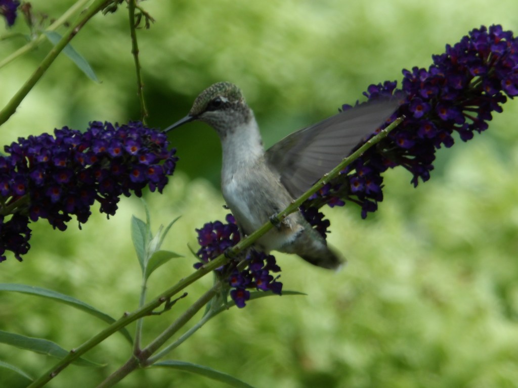One of the greatest joys for me this summer were my hummingbird visits. When the weather was perfect for working outside on my patio, I had a vantage point of view of the hummingbird feeder and butterfly bushes in my little garden that drew the tiny creatures near me. The birds’ fluttering and feeding captivated my attention so much so I felt they’d hypnotized me. I had difficulty looking away to return to my work.