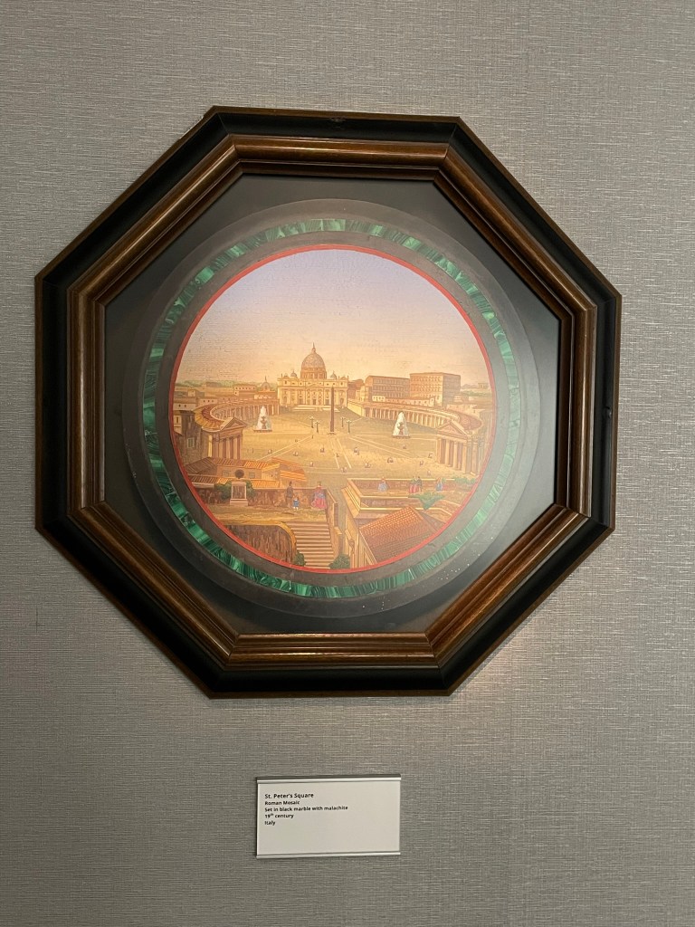 Other amazing works include the Florentine and Roman stone mosaics. No matter how closely I looked at these intricate pieces, I could not see the tiny stones. To me, it was if the scenes were painted.