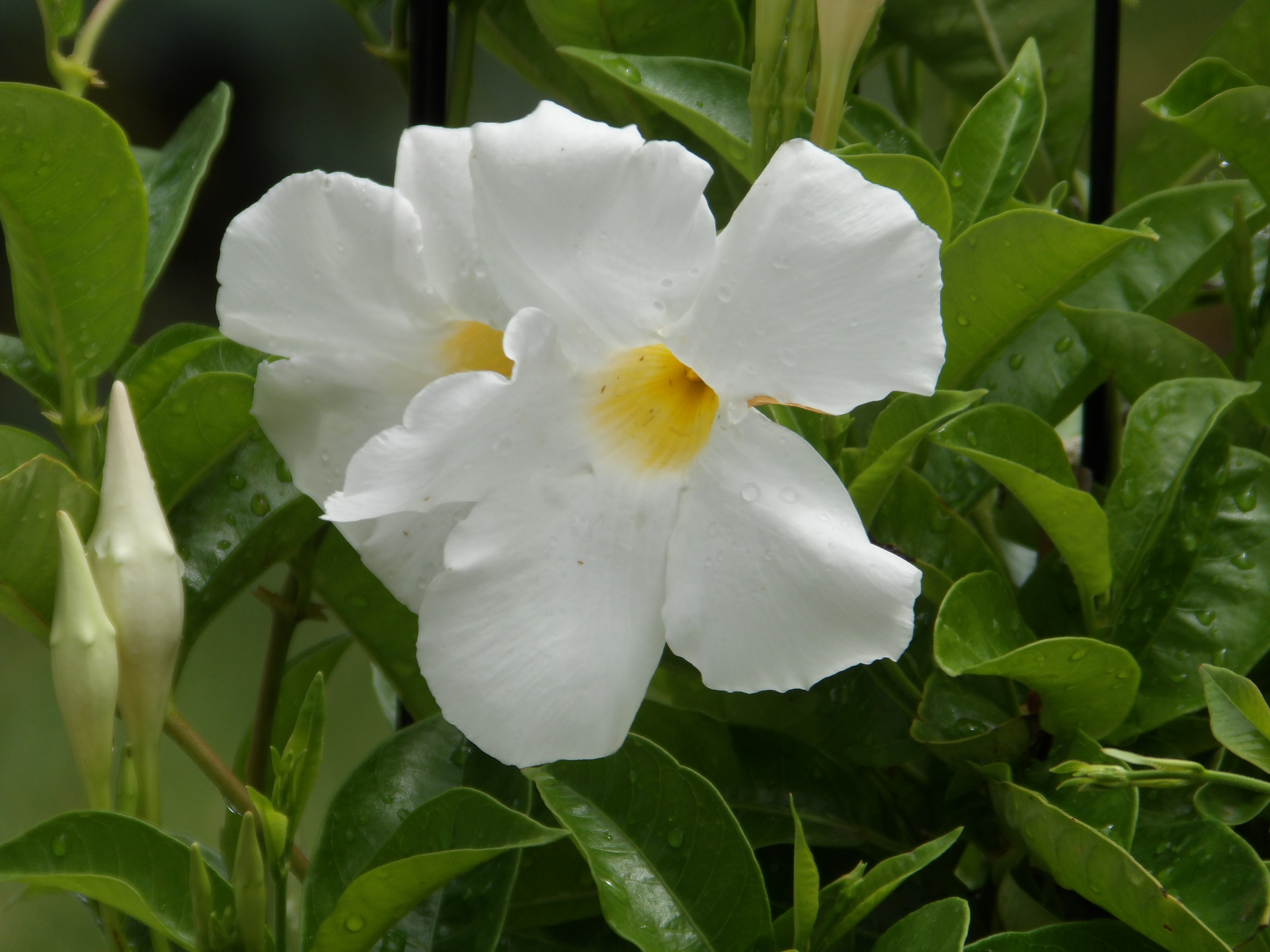 I’ve read that dipladenias are easy to propagate and will try to do so myself. Instructions say to cut a short length of healthy vine and remove the lower leaves. The cutting is then to be planted in a free-draining potting mix and placed in a bright, warm spot. The soil should be moist but not too wet or it will develop root rot.
