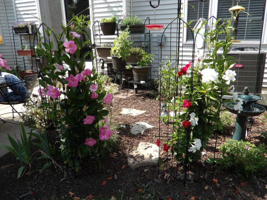 Dipladenia or Mandevilla? I received a stunning, tall plant with brightly colored trumpet-shaped flowers for Mother’s Day from my son and daughter-in-law. The plant was tagged “Mandevilla.” I loved it so much that I bought a second tall one and a small one in a pot.