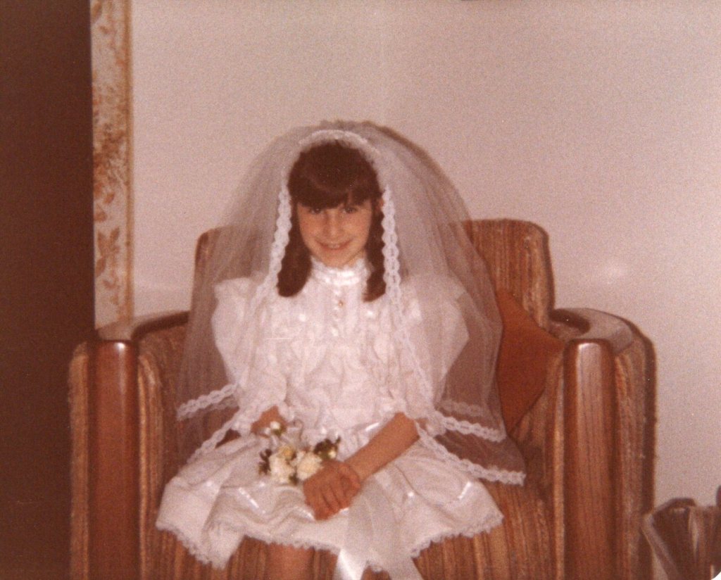 My daughter, Erin, wearing the same dress and veil that Lisa did, 1987.