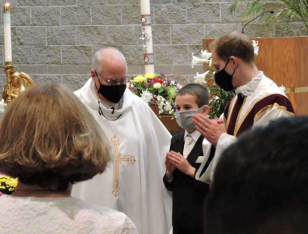 My grandson, Daniel, with his pastor and parish priest, 2021.