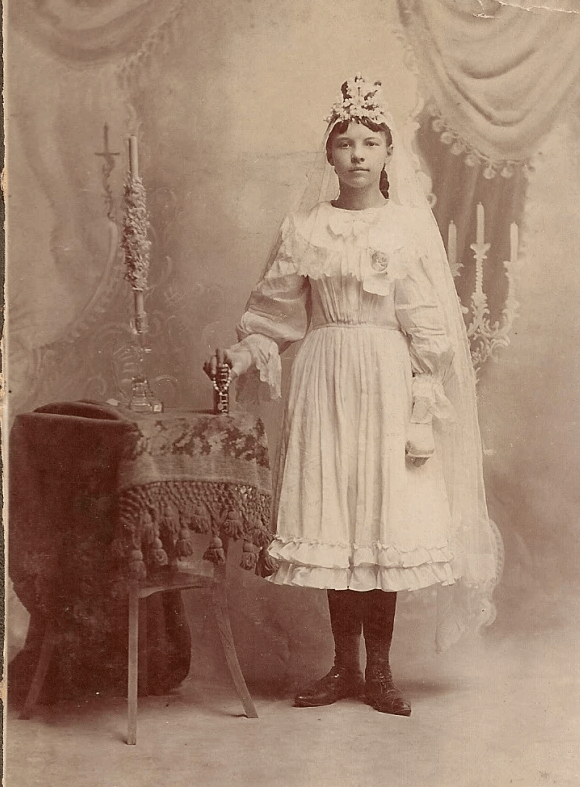 Following are First Holy Communion photos through six generations of my family from my great grandmother through to Nathan. I thought you might enjoy seeing these photos. Noted in parenthesis are the girls’ married names.