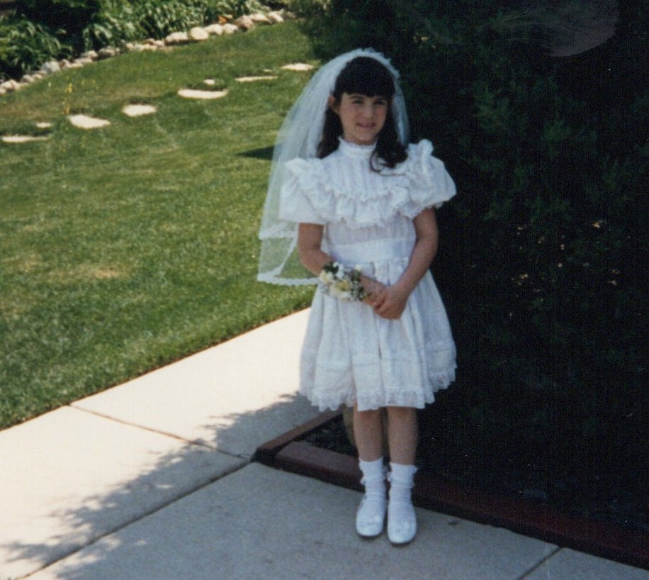 My daughter, Erin, wearing the same dress and veil that Lisa did, 1987.