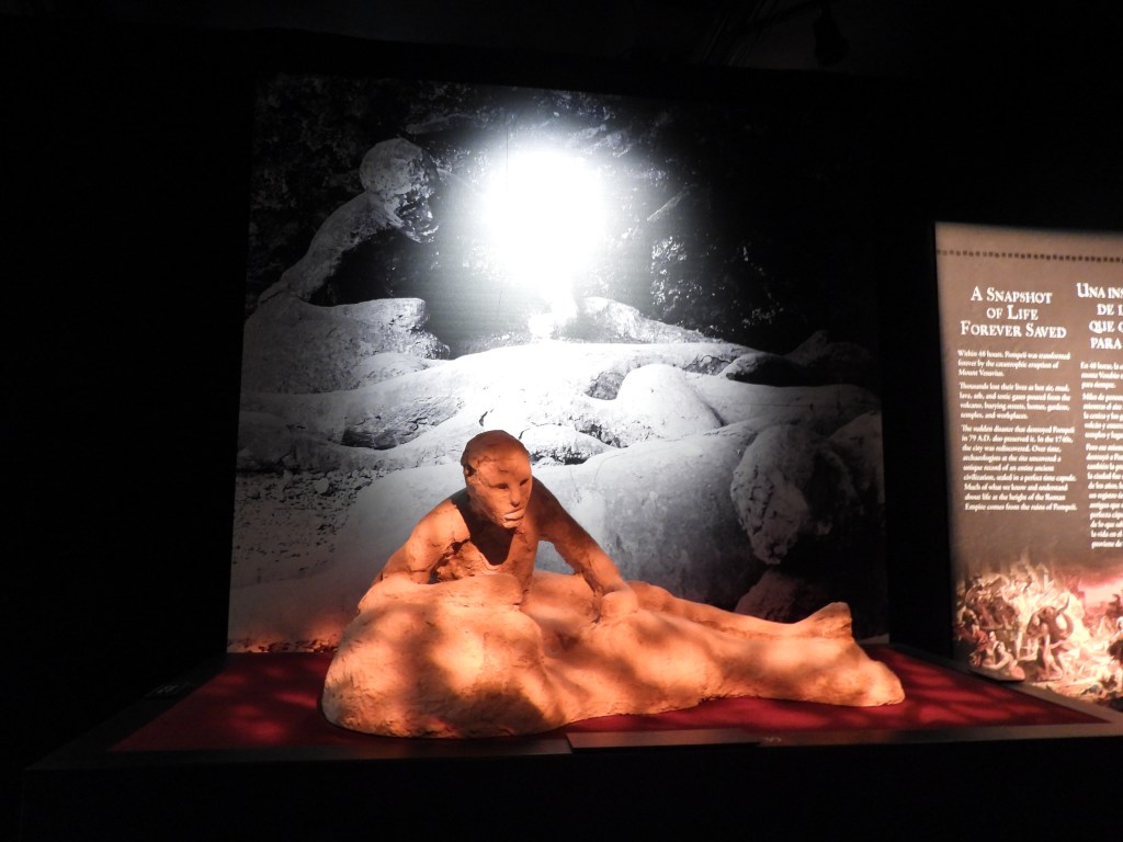The Museum of Science and Industry in Chicago, Illinois recently featured an exhibit that included a video, information boards, artifacts, and casts of human and animal remains from that famous volcanic eruption. (The actual human remains are stored in Pompeii.) Because of the type of eruption, items are curiously intact.