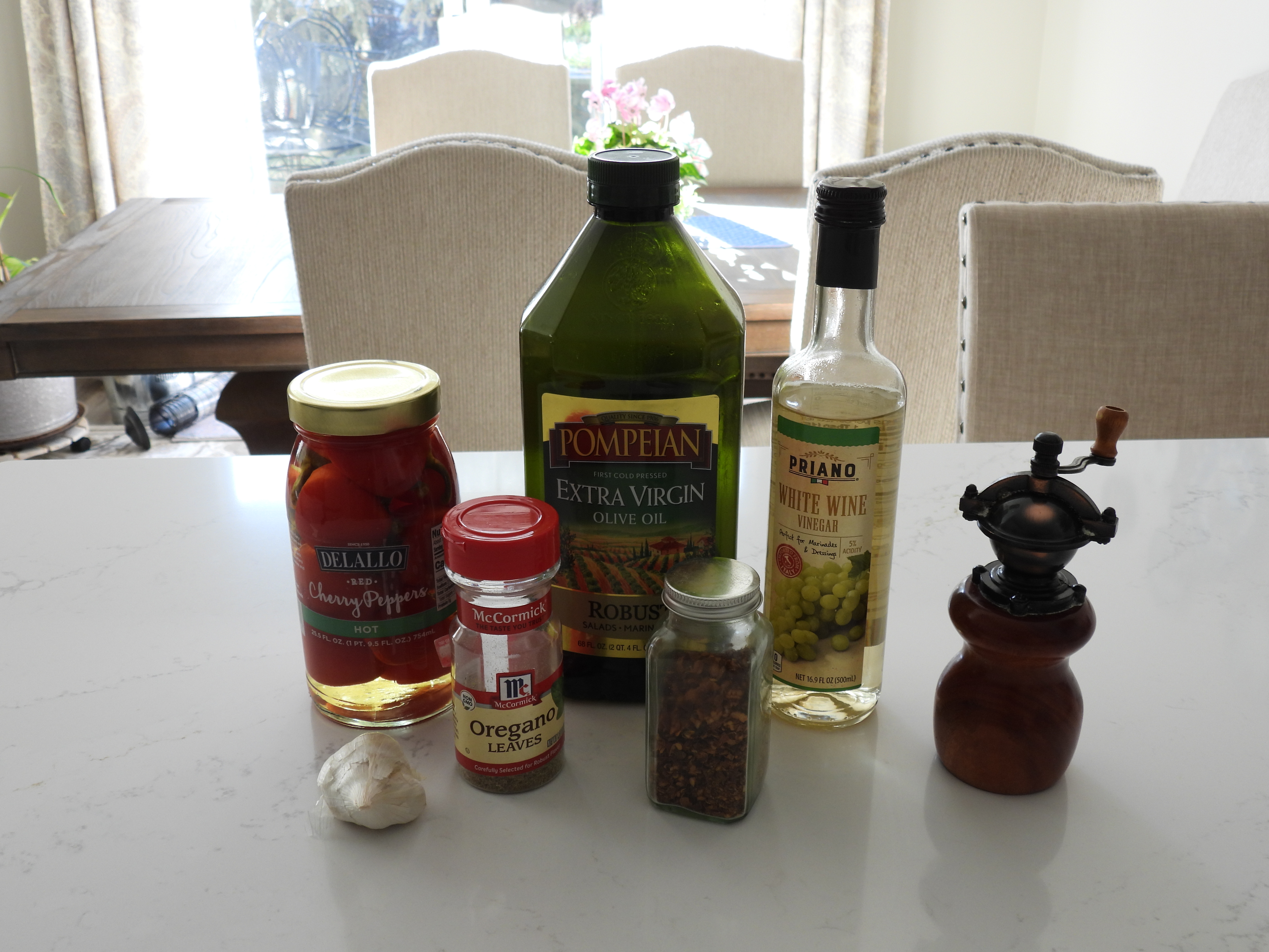 Flake the fish. Add olive oil, white vinegar, garlic, and cherry peppers. Season with oregano and red pepper flakes as desired. Mix well.