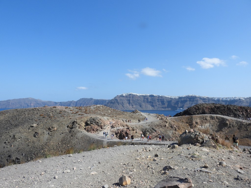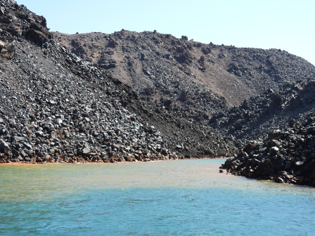 A popular stop in the Santorini caldera is the uninhabited island of Nea Kameni.