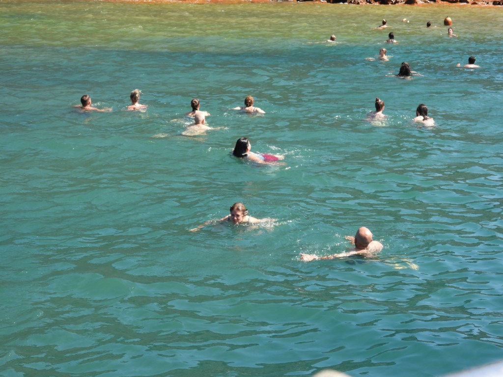 Members of our tour group also enjoyed a swim in the therapeutic hot springs off of that island. We were asked not to jump into the waters unless we were strong swimmers and in perfect health because of the rough current and high sulfur content, so I did not participate. I longingly watched others in the water and captured the moment with my camera.