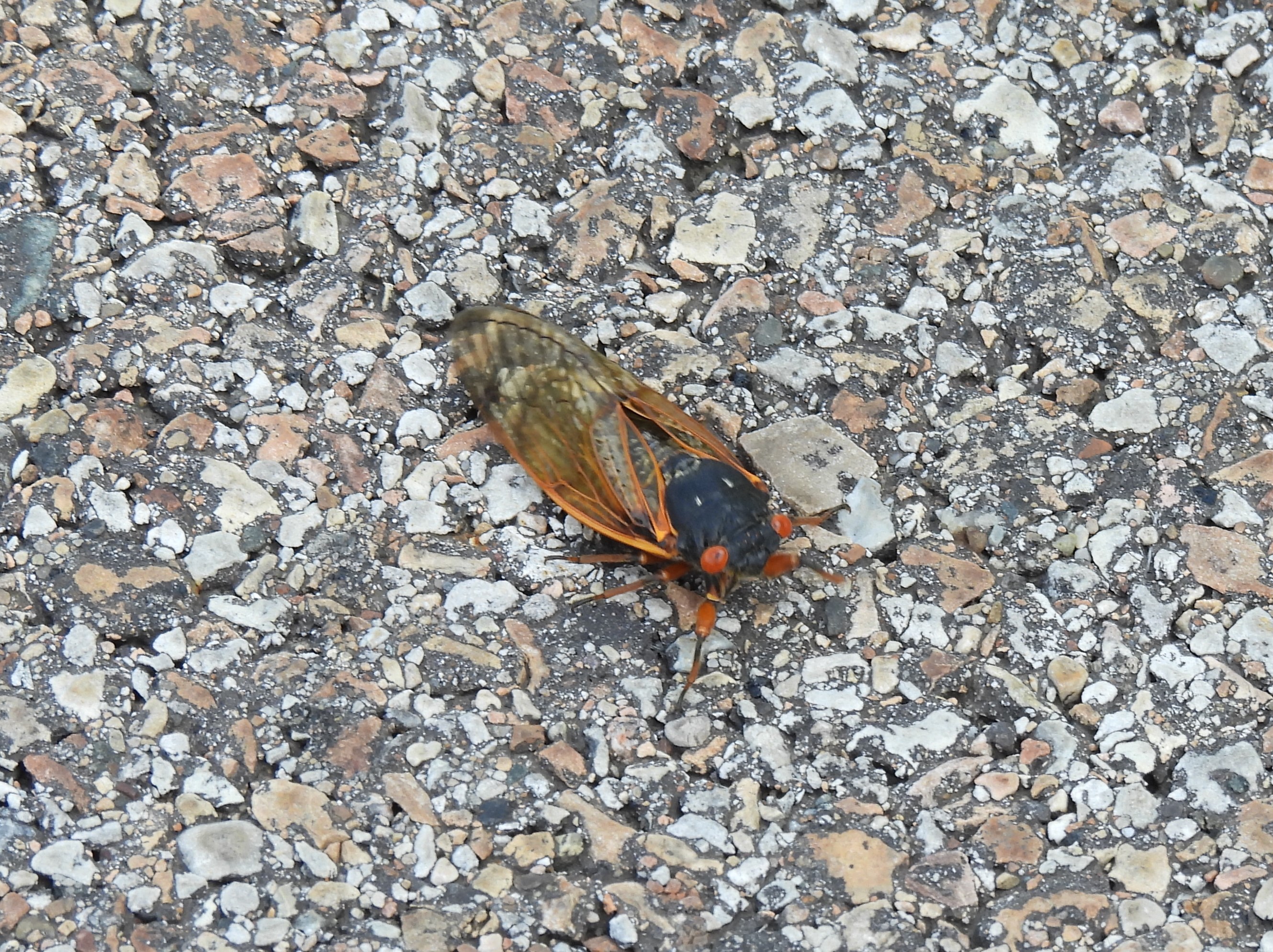 I love wearing sandals, but this means that crushed and living cicadas are underfoot close to bare feet. In addition, the creatures fly into your face and body. The experience is a mix of humor and annoyance.