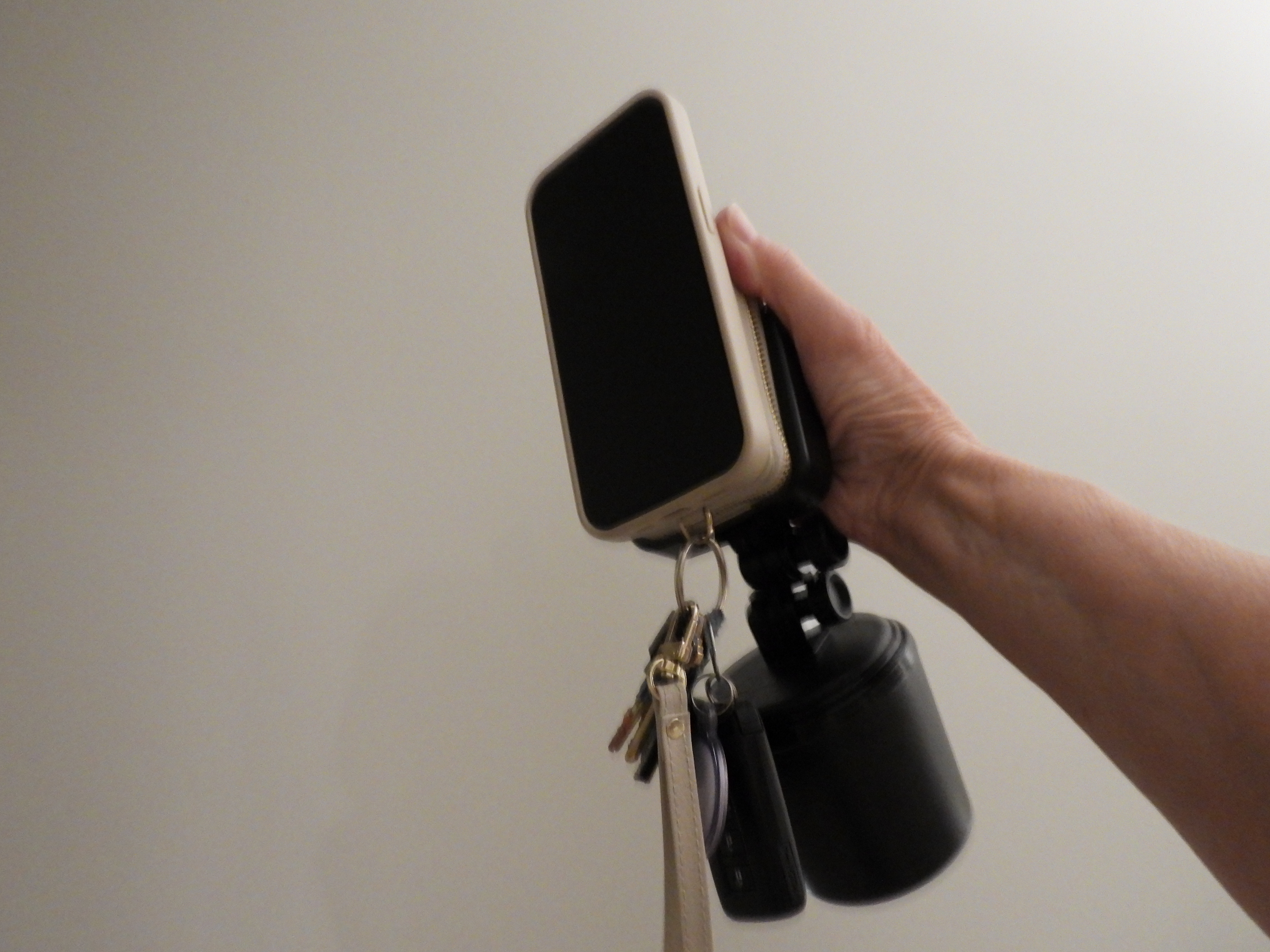When I returned to the car, I went to set my phone back into the Weather Tech phone holder only to find that the holder was still attached to my phone. Iād been waving the phone, my attached keys, and the cup holder while speaking with the employee, hence him watching me. I was a seemingly crazy lady with all of this stuff in her hand.