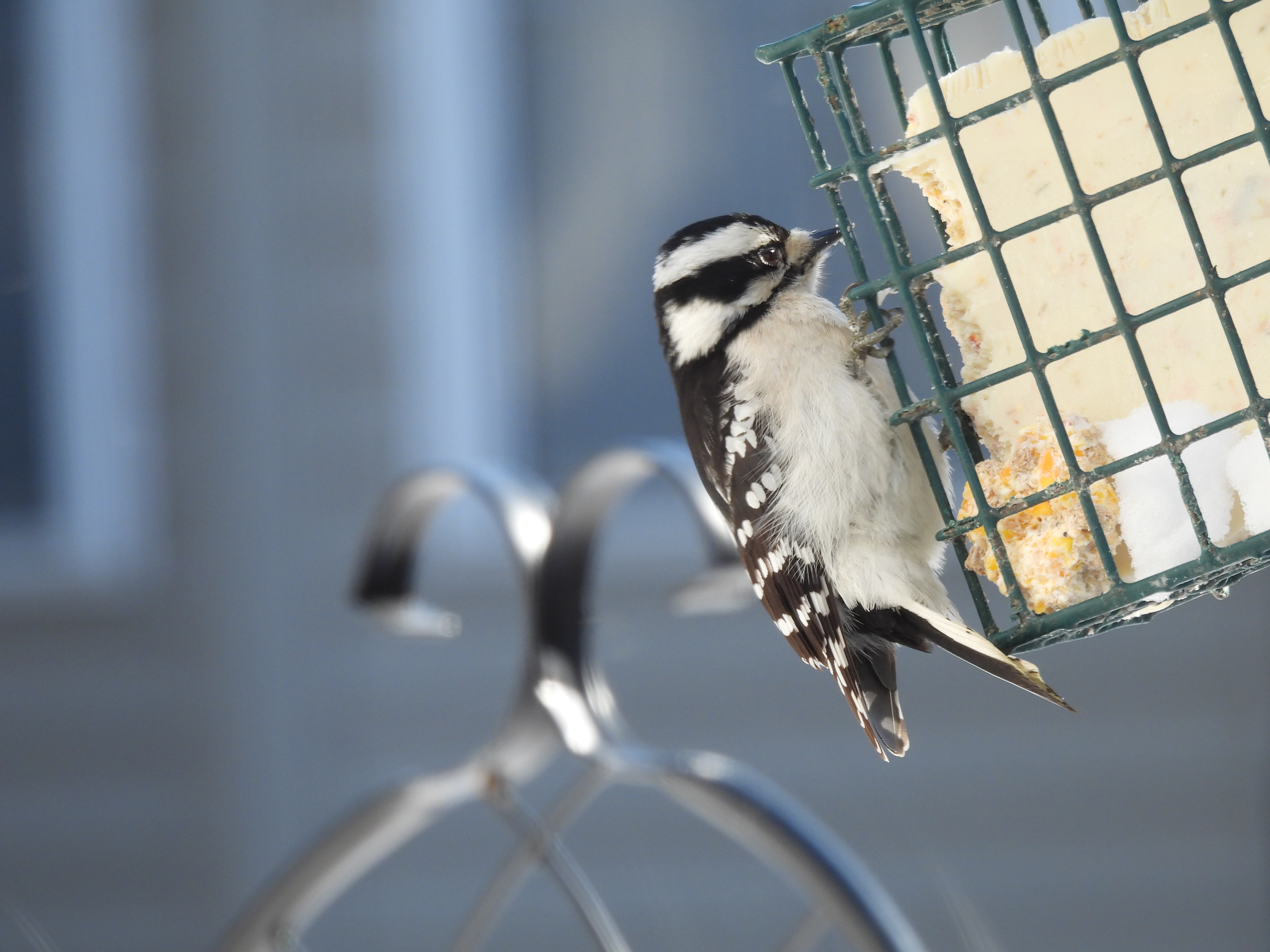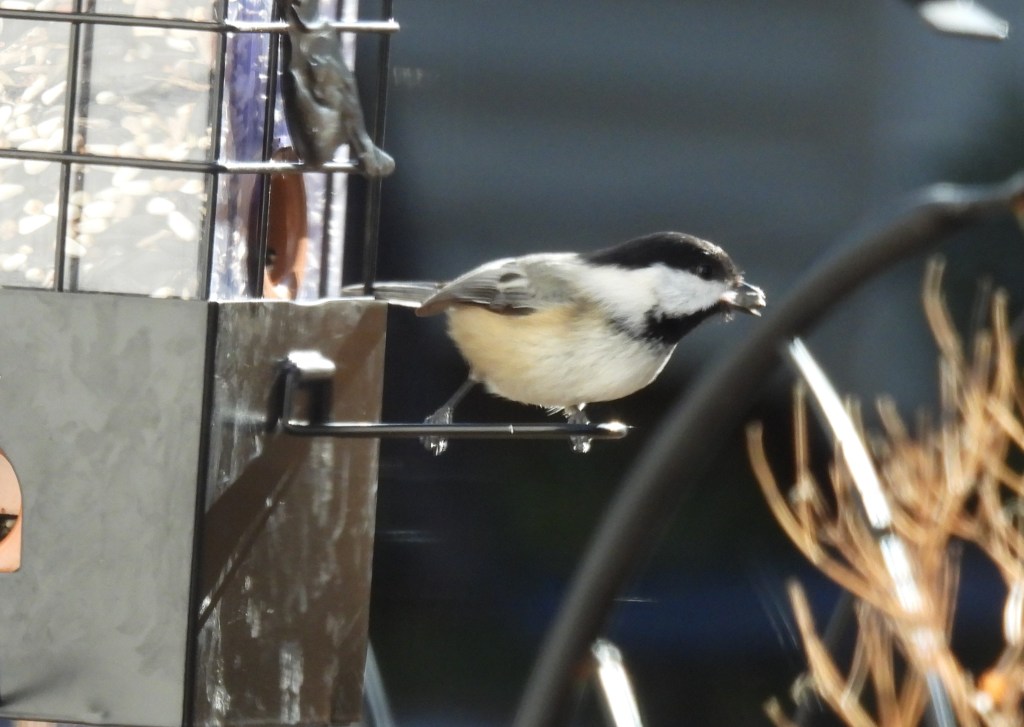 Black-capped chickadee flew in for a quick bite and quickly flew away.