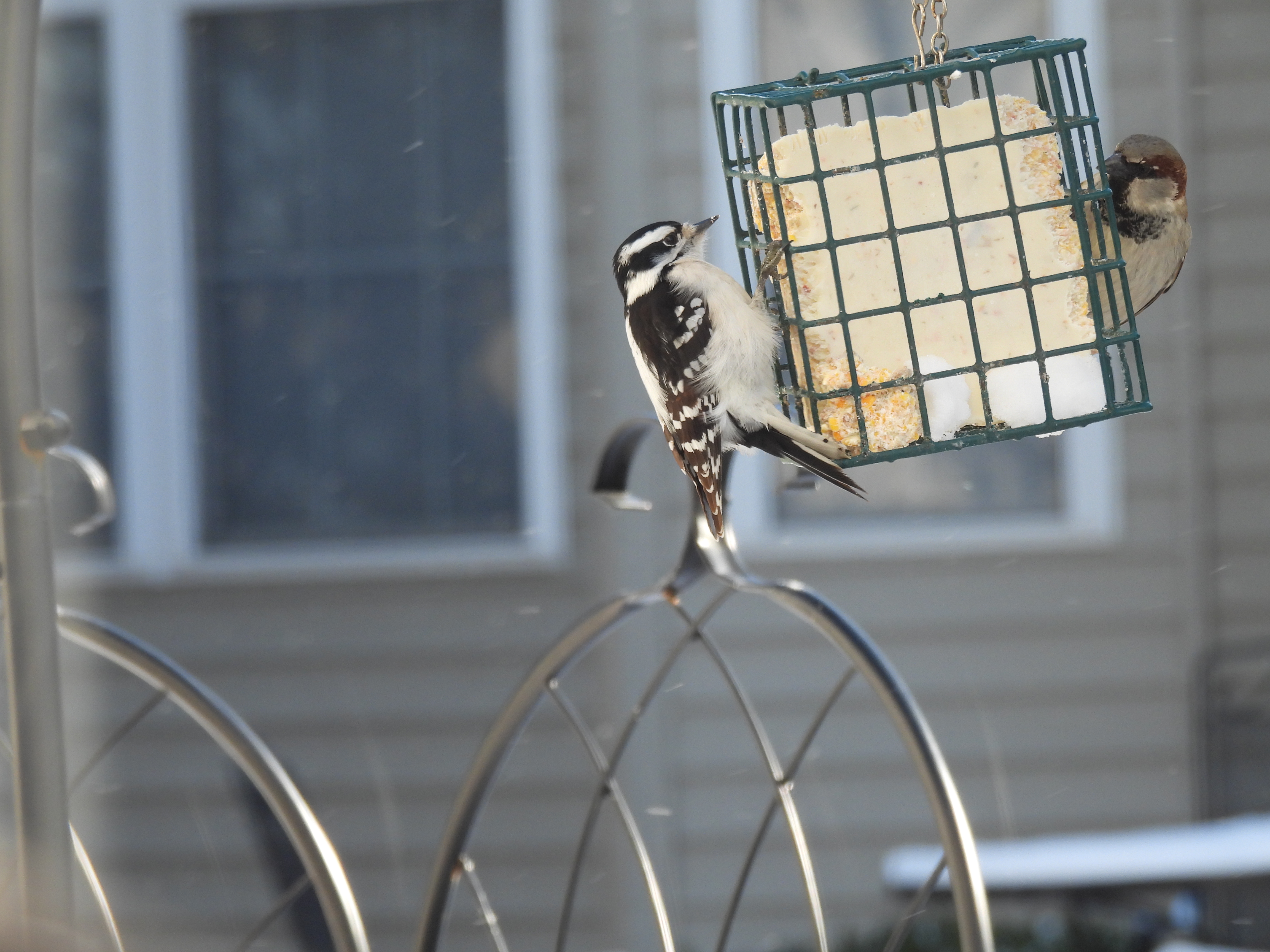 Miss Woodpecker and Sparrow enjoyed dining together.