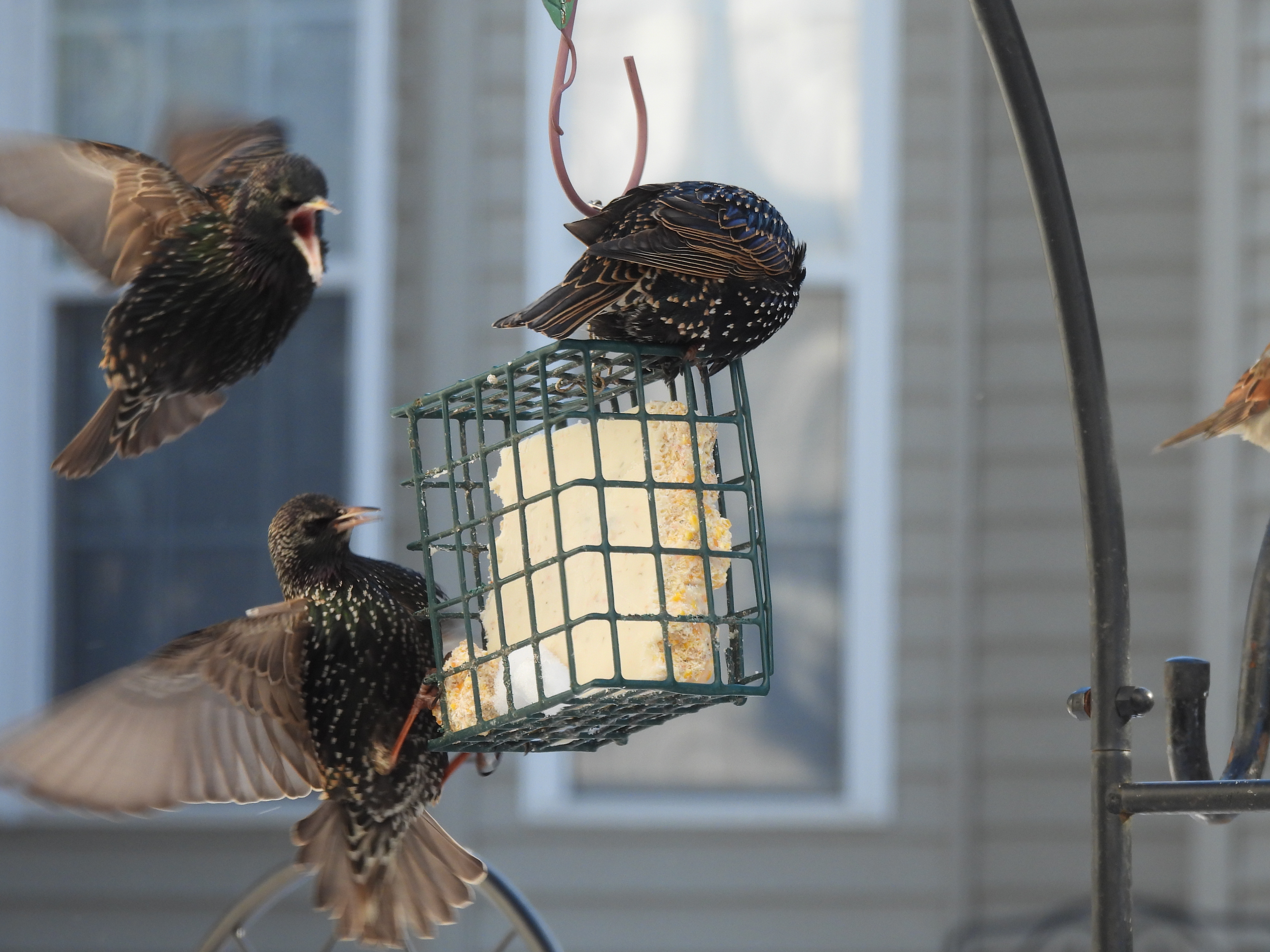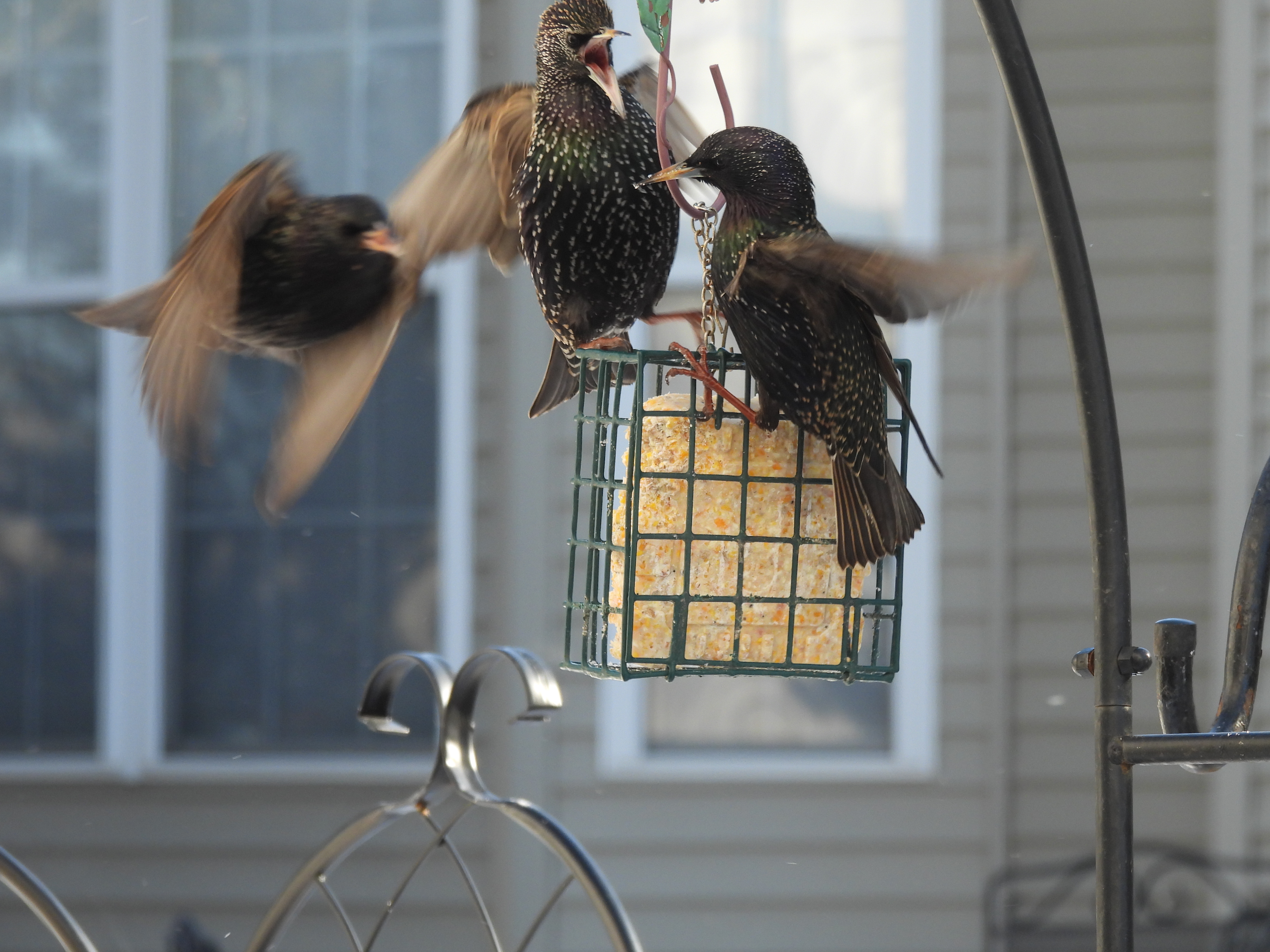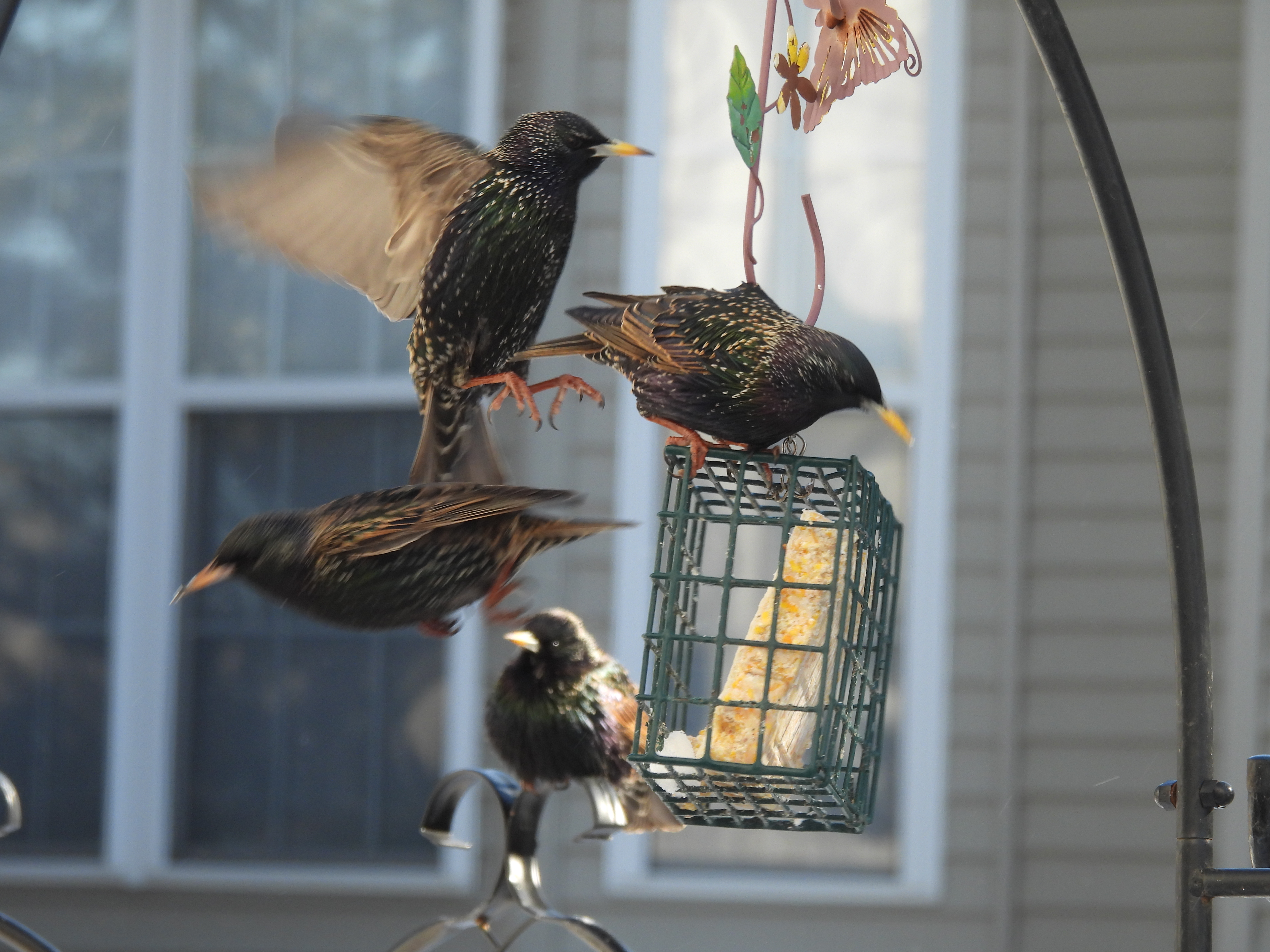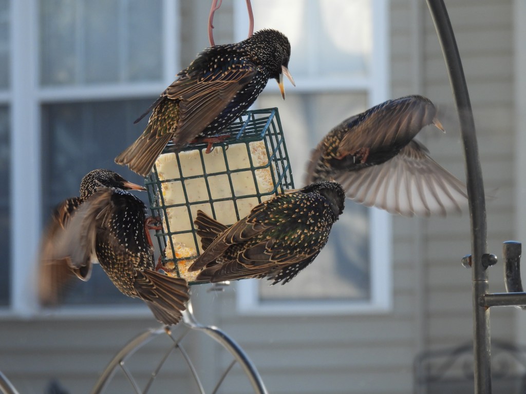The party was enjoyable until purple finch sighted the Starling family heading in.