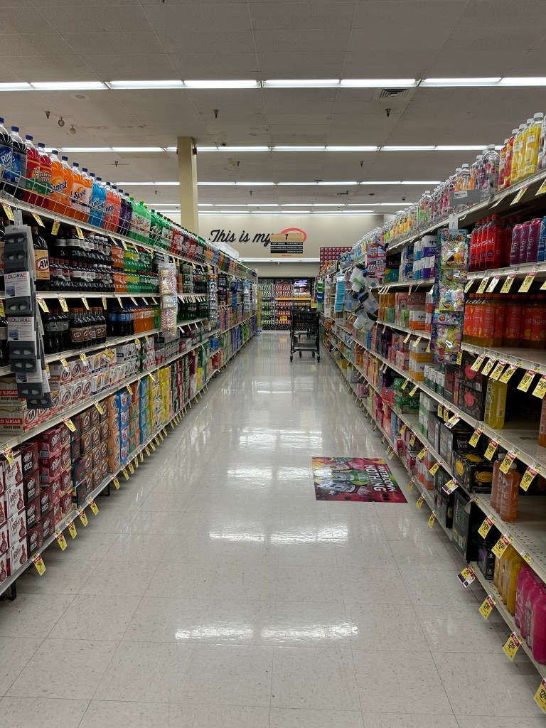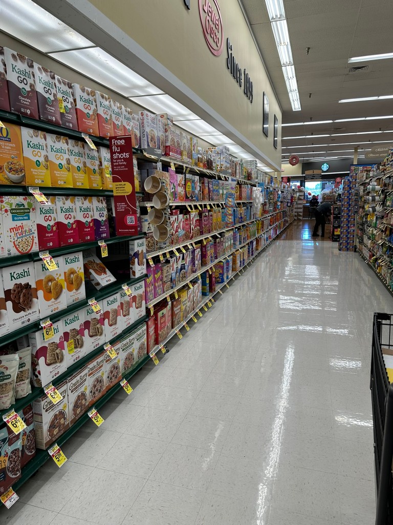 Most people don’t go hungry here (although too many do). Grocery stores have fresh produce, meat and deli items; refrigerators are filled with dairy products; and there are long aisles of boxed cereals, instant meals, snack foods, candies, and beverages.