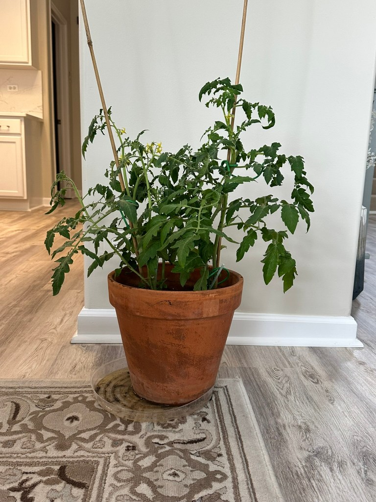 Growing tomatoes, even the smaller ones, isn’t practical in the 8-pod container that I have. The plants quickly outgrow the small space.
