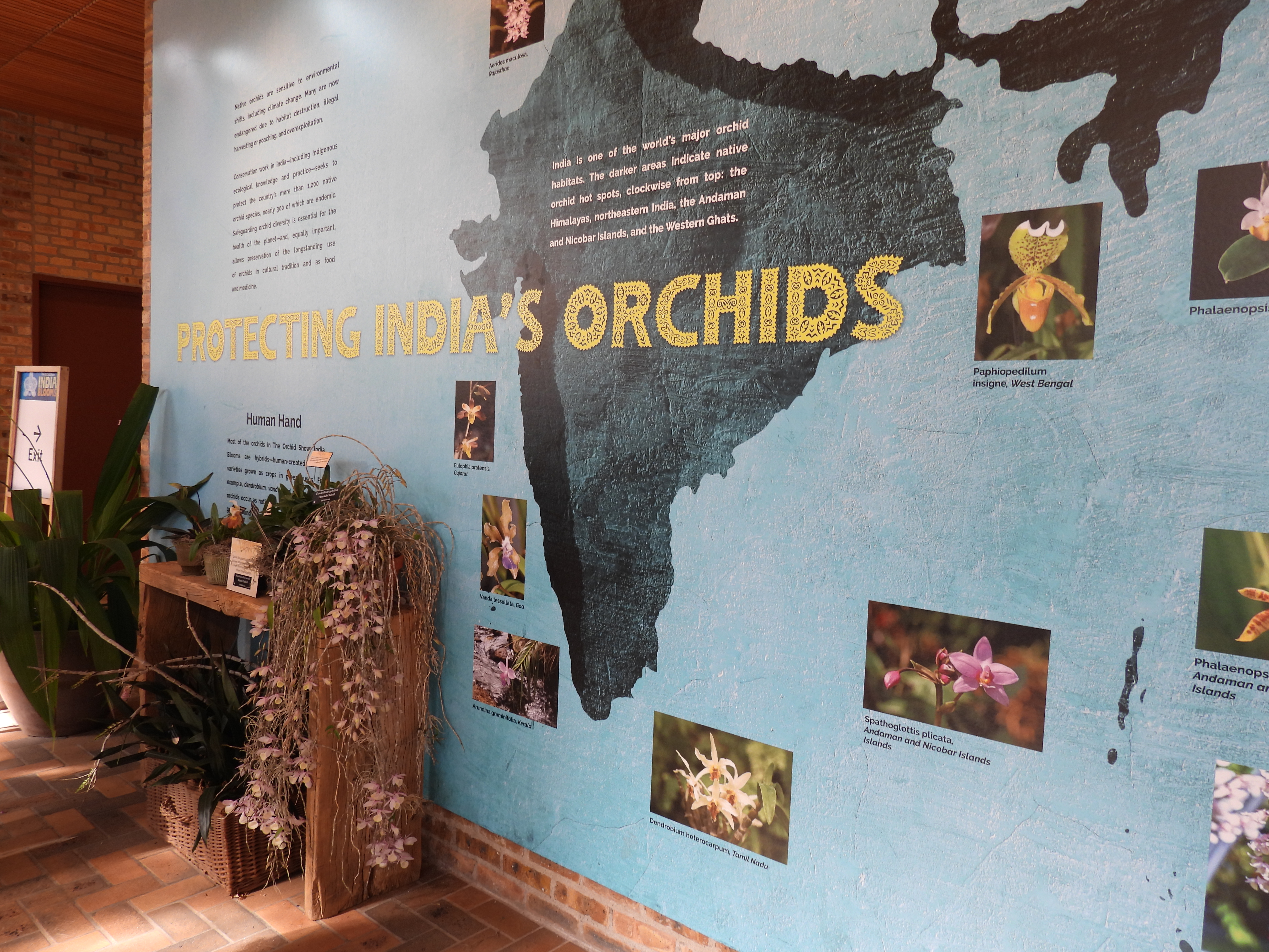 The exhibit displayed scenes enhanced with orchids that we might see in India.
