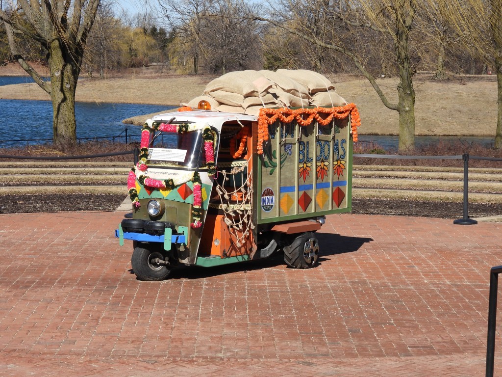 On the botanic garden’s website, artist Indira Freitas Johnson, who was raised in Mumbai, explains that rangoli is based on the tradition of a woman’s drawing on the threshold of her home. The art welcomes visitors and the new day and brings blessings to the family. Since the art is destroyed by people walking across it, it is replaced each morning.