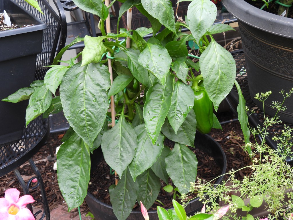 This plant is producing about one green pepper per week.