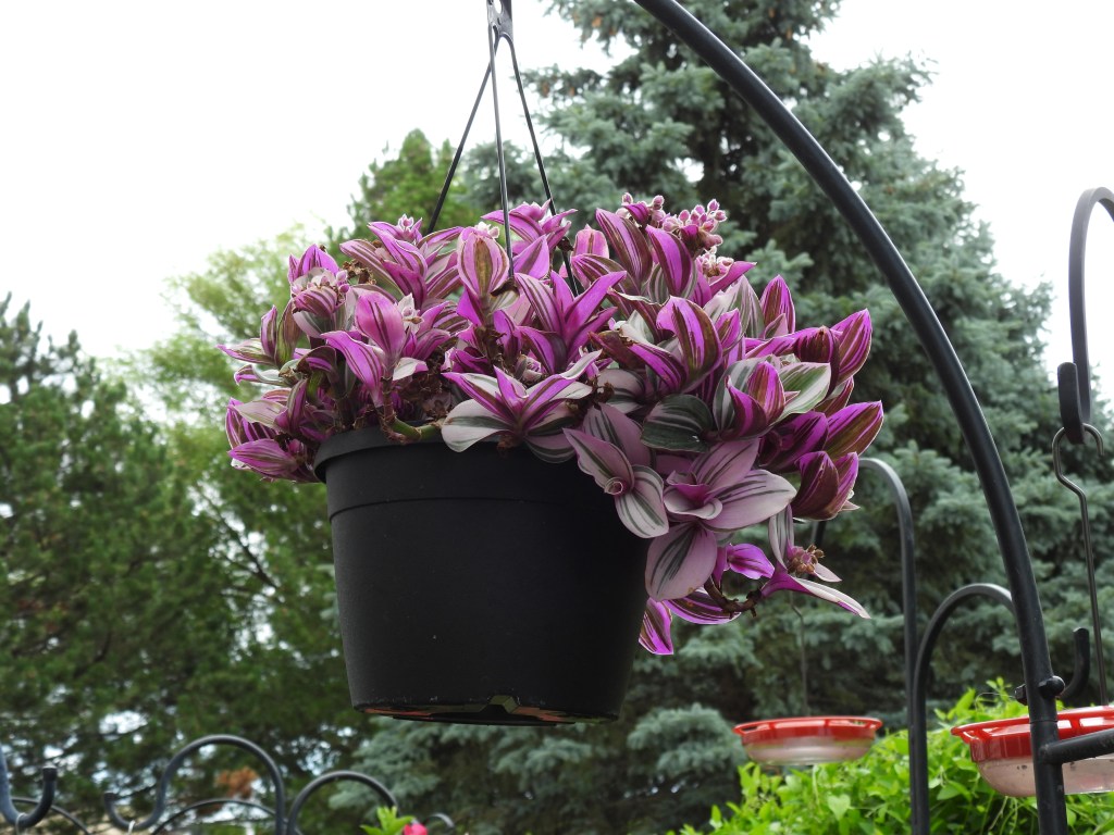 This fun plant can be grown indoors or outside and is known by many names including tradescantia nanouk Nanouk tradescantia, fantasy venice, wandering jew, spiderwort, tradescantia bubblegum, and tradescantia albiflora.
