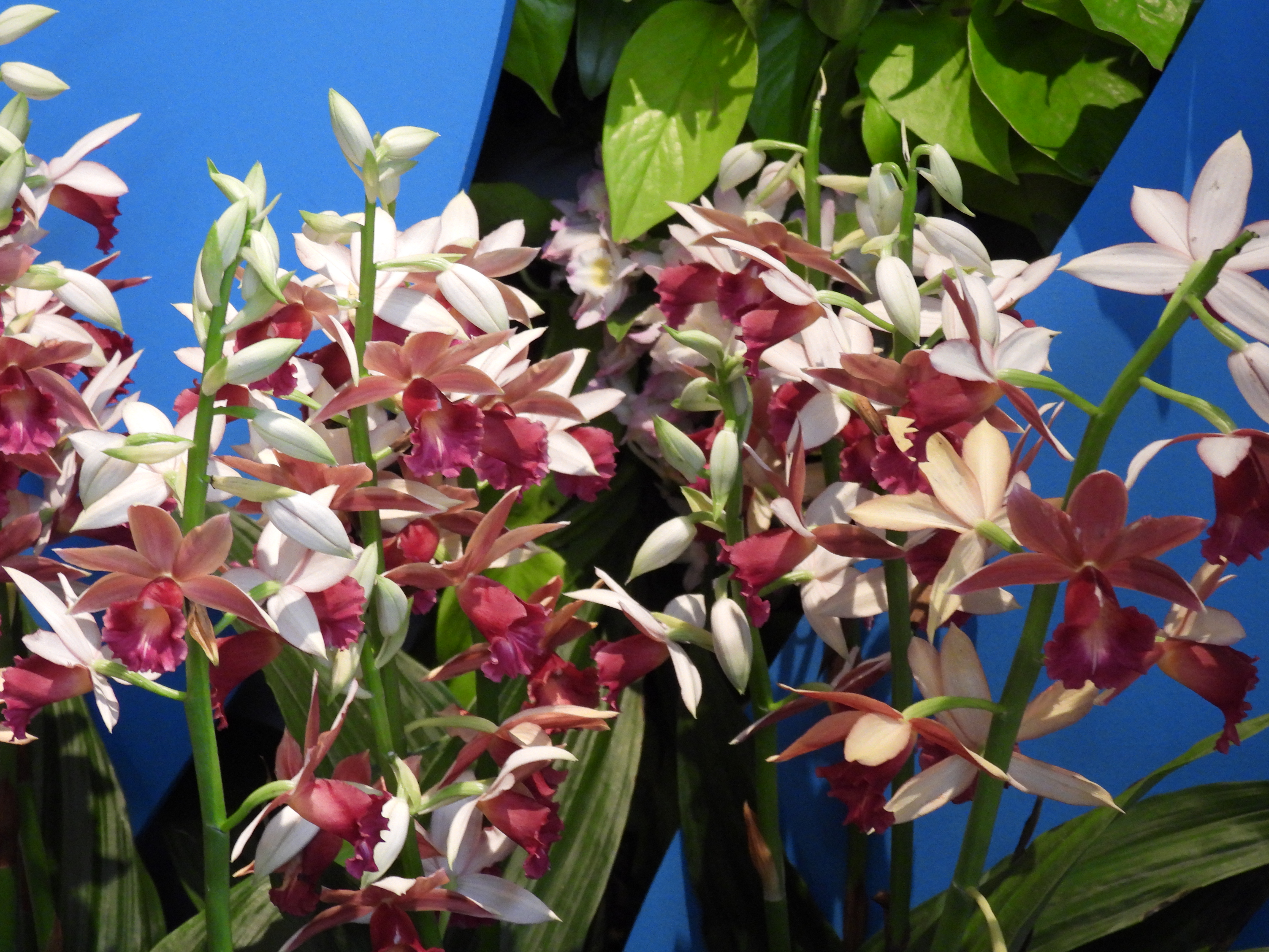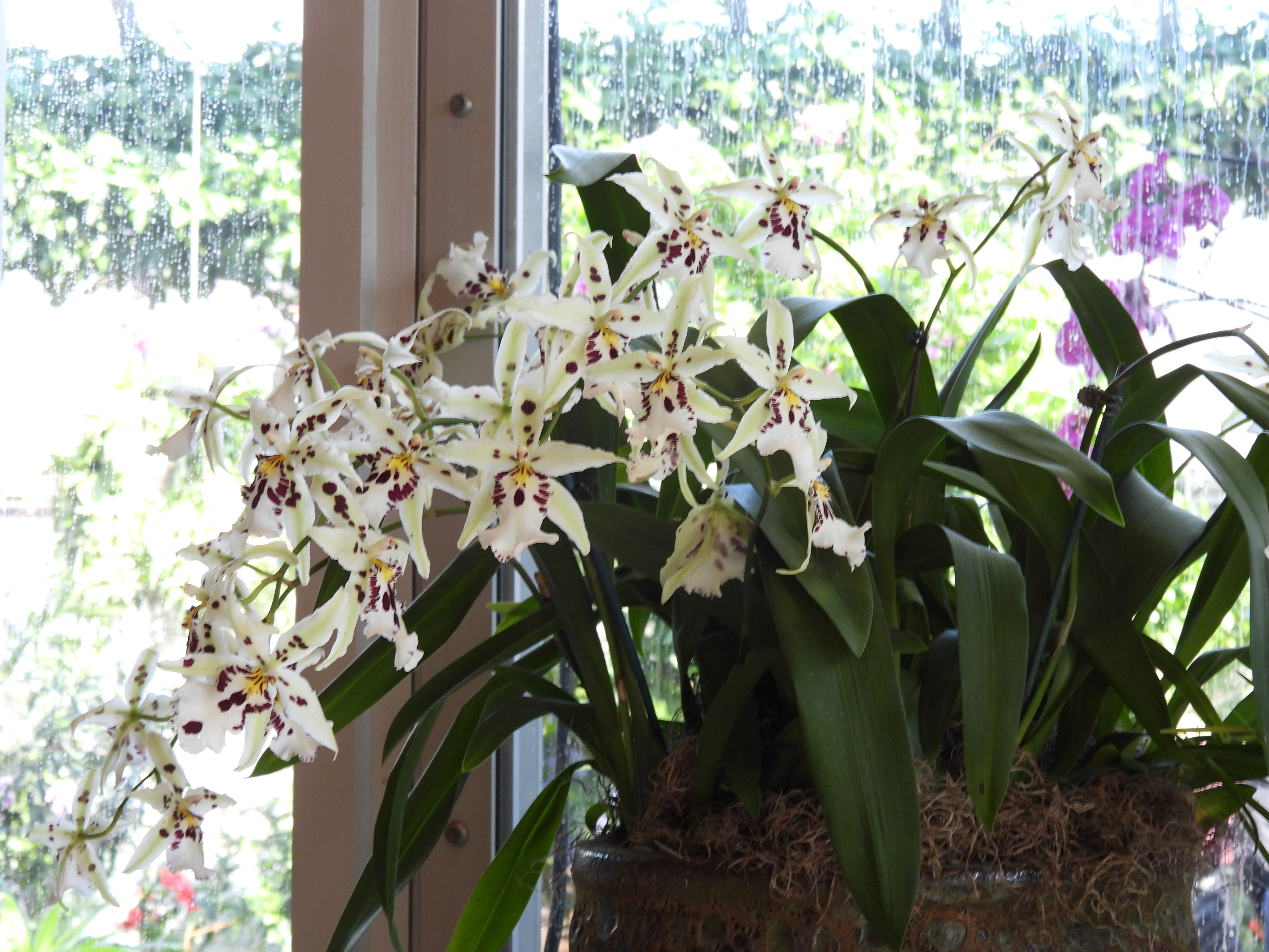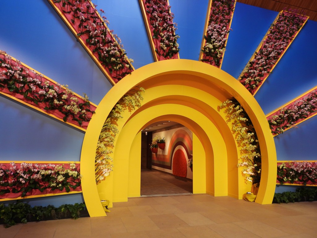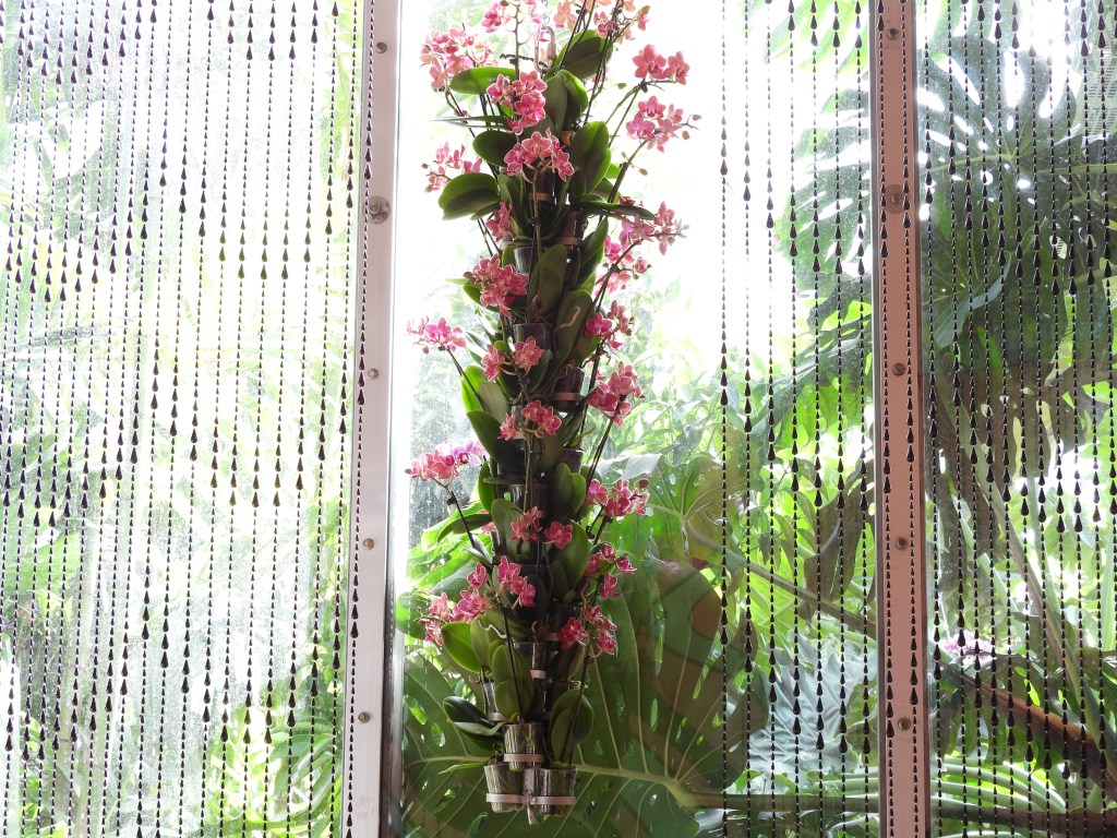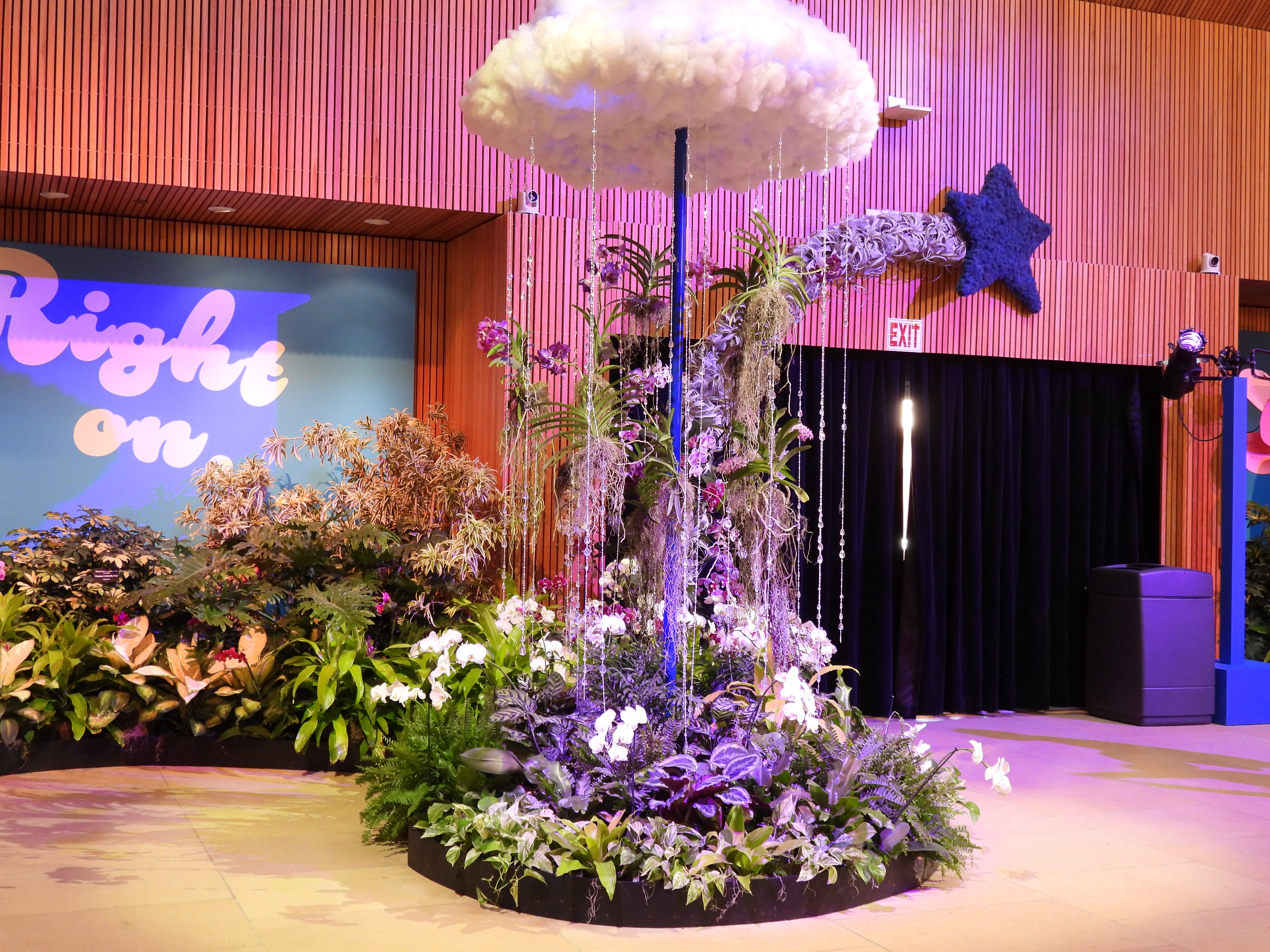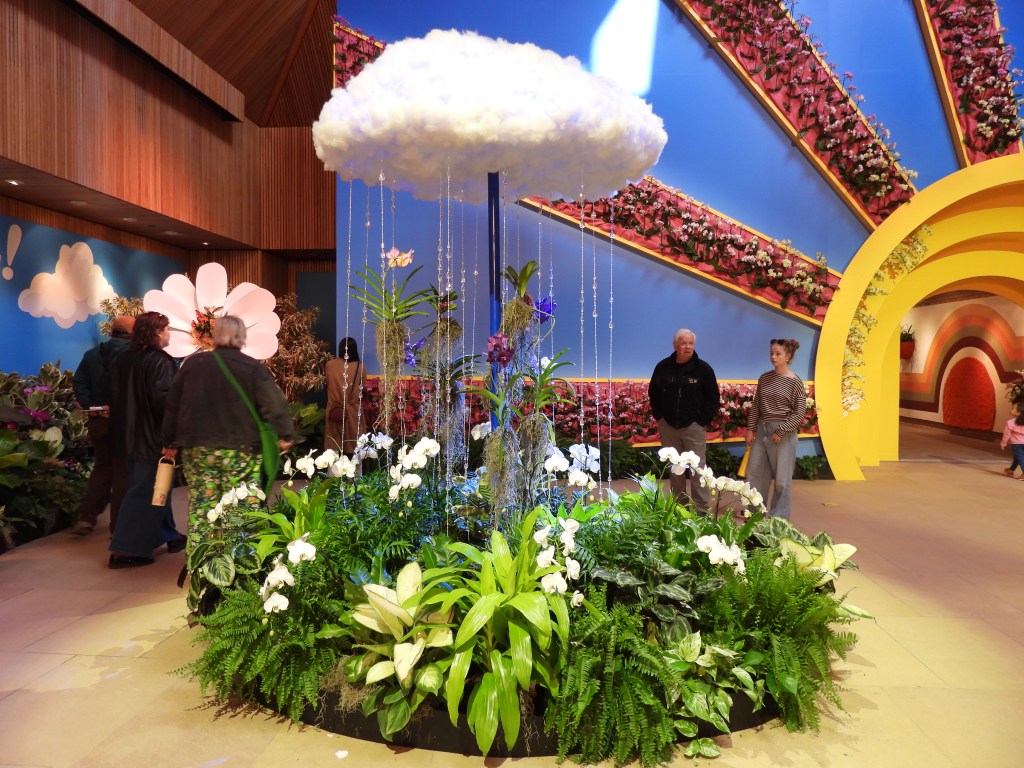 Displays “rain” in an abundance of colorful orchids to brighten spirits.
