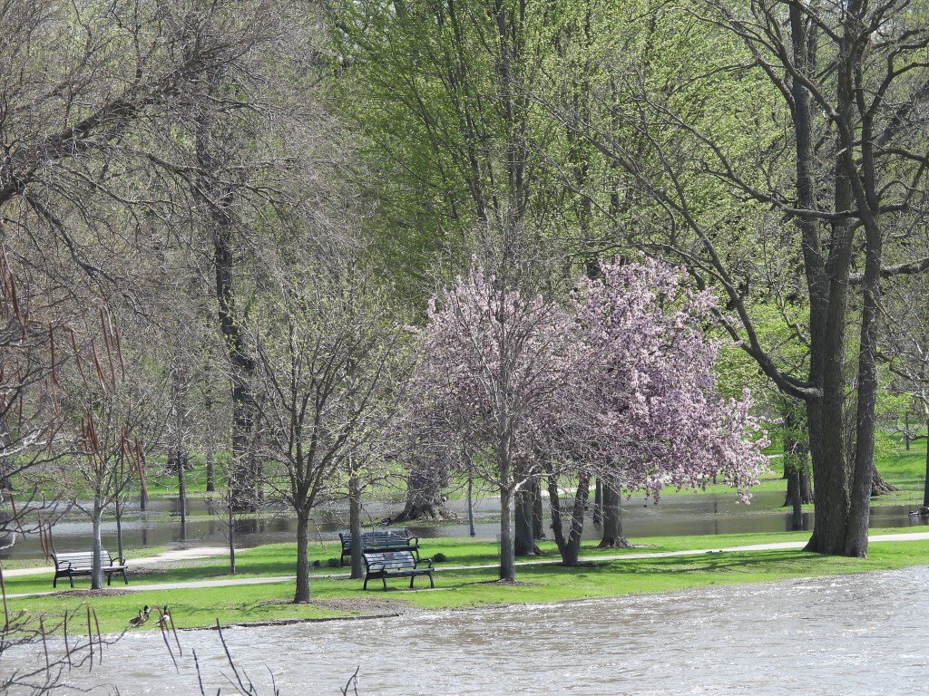 Photo: Trees along the Fox River, Geneva, Illinois. Notice the high river water and the flooded park.